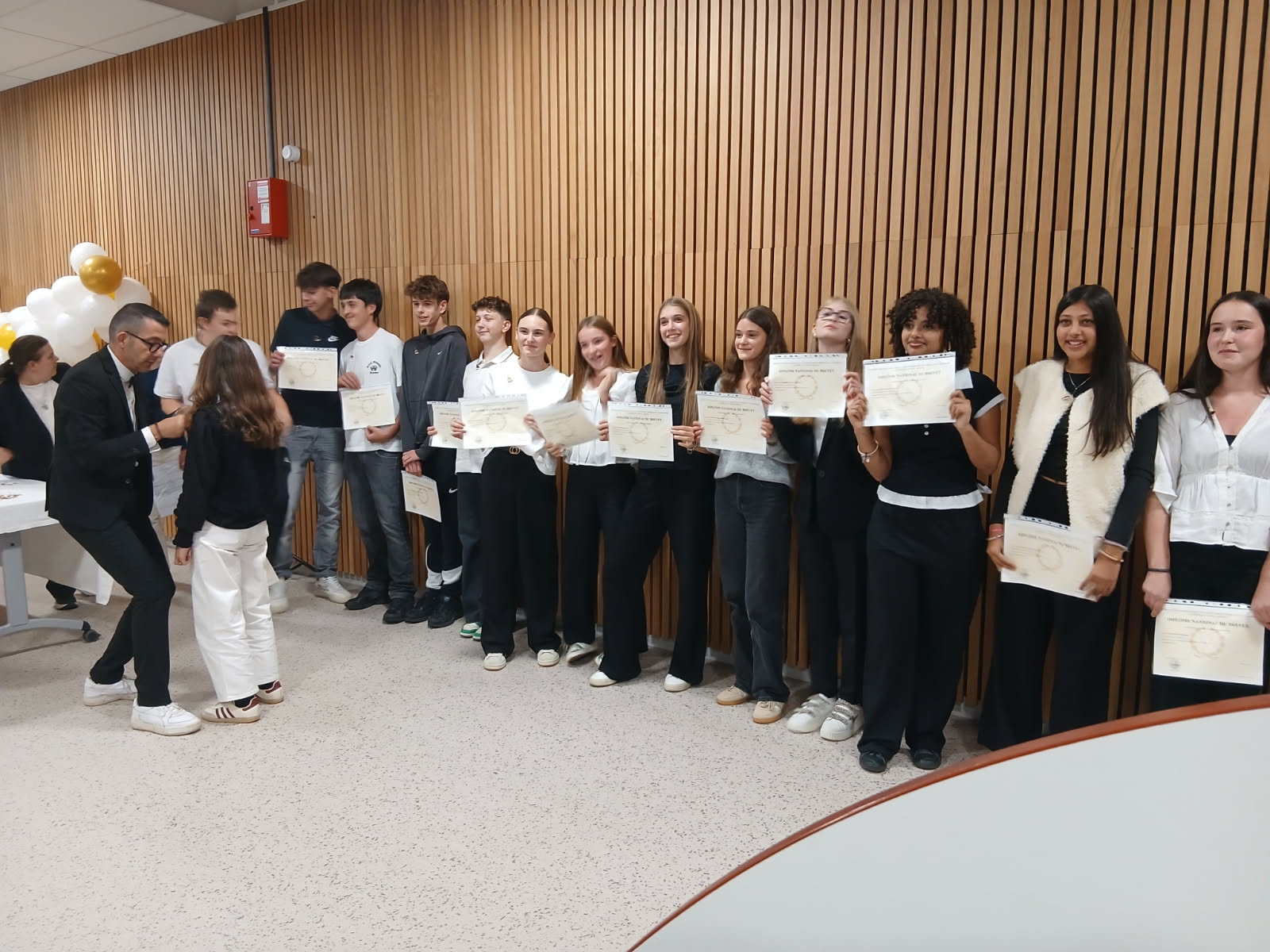 - Devant un public attentif et fier, les lauréats de l’année scolaire 2024-2025 se sont vus remettre leur diplôme, symbolisant la fin de leur parcours au collège. Chaque élève a également reçu une broche représentative de son diplôme, un geste fort en symbole pour marquer cette étape importante de leur parcours scolaire.